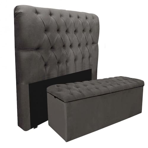 Lindo Conjunto Baú Recamier E Cabeceira Madrid King em Suede Cinza. Ideal para quem busca modernidade para o quarto e espaço para guardar cobertores, roupas de cama, travesseiros, entre outros. Recomendado para cama King Size padrão 193cm x 203cm. Feitos com madeira reforçada 100% de reflorestamento garante durabilidade e a resistência do produto, acabamento em tecido Suede, tratamento antialérgico e antiácaro.
