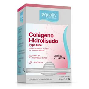 Colágeno Type One - 30 Sachês - Equaliv Type One é uma combinação de colágeno, vitaminas e minerais quelatos que contribuem para a redução das linhas de expressão, aumento da hidratação e da densidade da pele. Equaliv Type One conta com a revolucionária tecnologia alemã VERISOL®, que concentra em uma menor dose diária, peptídeos biologicamente ativos de colágeno, de sabor neutro, estimulando a produção do colágeno e retardando o processo de envelhecimento. Modo de preparo: Adicionar o conteúdo de 1 (um) sachê (4 g) em 200 mL de água, agitando até dissolver completamente. Contém 30 sachês.