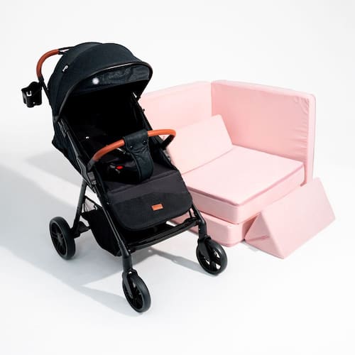 Kit Bebê Carrinho Dobrável Freso e Sofá Soft Play Modular Rosa