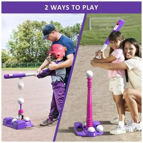 Faixa ajustável 30 ou 50 centímetros, projetada para treinar à medida que cresce Terno para crianças de diferentes alturas, elas também podem brincar com seus amigos. A camiseta tradicional de pé fixo pode ajudar melhor as crianças a praticar como acertar a bola. Apresenta um taco de beisebol leve e fácil de segurar para ajudar a movê lo livremente.