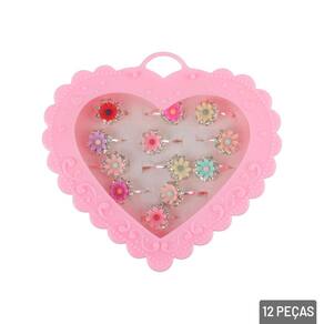 KIT Beleza Infantil 12 Peças Anéis de Flor Deixe a imaginação das pequenas brilhar com o encantador Kit Beleza Infantil, Criado especialmente para crianças que adoram se enfeitar e brincar de se arrumar, este kit é uma ótima forma de estimular a criatividade, o faz de conta e o desenvolvimento da autoestima desde cedo.\nComposto por 12 anéis com formatos de flores delicadas e coloridas, o kit é perfeito para complementar fantasias, brincadeiras de salão de beleza, aniversários ou simplesmente para dar um toque especial ao dia a dia da criança. As peças são feitas de material leve e seguro, com tamanhos adaptados aos dedinhos infantis.\nEspecificações:\nMarca : TINGS\nTipo de material : Metal, Plástico\nCores ou Estampa : Color\nDimensões do Produto : 2,5 X 10 X 9,5 CM\nDimensões da Embalagem : 2,5 X 10 X 9,5 CM\nPeso Bruto (Gramas) : 0.036 Marca: Não Informado