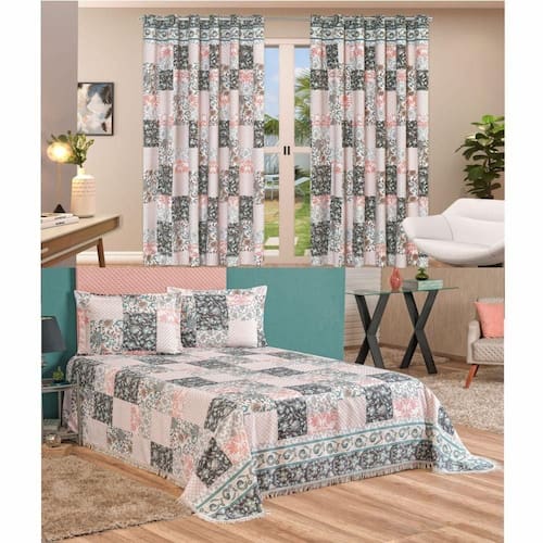 Kit Belline Colcha Casal Padrão + Cortina 3 Metros 4 Peças