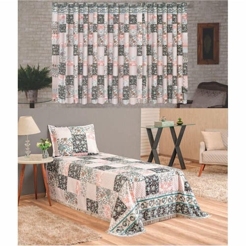 Kit Belline Colcha Solteiro + Cortina 2 Metros 3 Peças