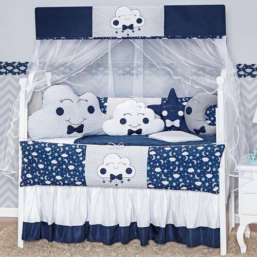 Kit Berço 12 Peças Formato Nuvem Menino Marinho Baby