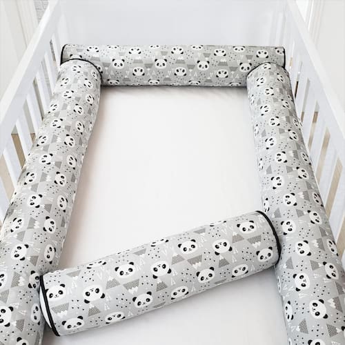 Kit Berço Rolinhos Americano com 4 peças, fabricado em tecido 100% algodão com estampa. Os rolinhos possuem zíper e os enchimentos removíveis para lavagem. Complete sua lista de enxoval de bebê. O berço é o cantinho mais aconchegante depois do colo dos pais. Pensando na segurança e conforto do bebê, o kit berço rolo 4 peças, protege o bebe do contato com a grade do berço, ele é confeccionado em tecido 100% algodão. Possui zíper para facilitar a higienização.
