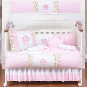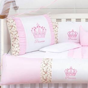 Kit Berço Americano Coroa Rosa Menina 11 peças1 Edredom 1.30X0.75mts1 Cabeceira 0.57X0.37mts2 Lateral 1.25X0.25mts1 Lençol de cima 1.30X0.90mts1 Fronha 0.28x0.38mts 1 Bando de mosquiteiro 1.40x0.20mts1 Mosqueteiro 4.50x1.50mts1 Trocador 0.50x0.40mts1 Almofada Coroa 0.40x0.20mts1 Saia Para Berço 1.30x0.70x0.30mtsDescrição das peças :Tecido estampado 100% algodão Tecido liso 100% poliéster Jogo de lençol tecido 100% ALGODÃO Enchimento 100% poliésterMosqueteiro 100% poliamidaInformações Importantes:O produto já vai pronto para o uso, com o enchimento já incluso.Acompanha as peças conforme a descrição, não esta incluso o BerçoA cabeceira e as laterais do kit possuem zíper para retirar o enchimento, facilitando assim uma possível lavagem do produto. Marca: L2m