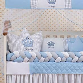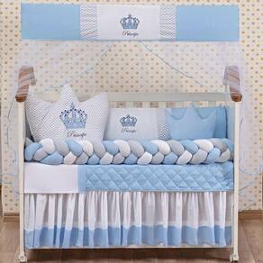 TOTAL 11 PEÇAS 1 Cabeceira------------------0.57 x 0.37 mts 1 Lateral -----------------------1.25 x 0.25mts 1 Trança --------------------1.25 x 0.12 mts 1 Lençol de cima ------------1.30 x 0.90 mts ------ 100% ALGODÃO 1 Fronha ---------------------0.28 x 0.38 mts ------ 100% ALGODÃO 1 Bando do mosqueteiro---1.40 x 0.20 mts 1 Mosqueteiro---------------4.50 x 1.50 mts 1 Edredom-------------------1.30 x 0.75 mts 1 Trocador -------------------0,50 x 0,40 mts 1 Almofada Coroa --------0.35 x 0.30 mts 1 SAIA BOX -------------1,30 x 0,70 x 0,30 mts Descrição das peças :Tecido estampado 100% algodão Tecido liso 100% poliéster Jogo de lençol tecido 100% ALGODÃO Enchimento 100% poliéster Mosqueteiro 100% poliamida Informações Importantes: O produto já vai pronto para o uso, com o enchimento já incluso. Acompanha as peças conforme a descrição, não esta incluso o Berço A cabeceira e as laterais do kit possuem zíper para retirar o enchimento, facilitando assim uma possível lavagem do produto.
