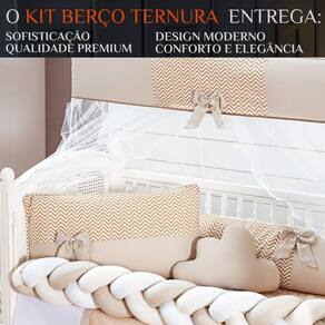 Kit Berço Americano Protetor De Berço Trançado Ternura Luxuoso Cor: CAQUI Dê ao quarto do seu bebê um ar luxuoso, moderno e acolhedor com o Kit Berço Americano Ternura Luxuoso com Protetor Trançado. Mais que uma decoração, é segurança, conforto e estilo em cada detalhe. Imagine seu bebê dormindo tranquilo, rodeado pela suavidade de um protetor trançado que, além de proteger, é uma verdadeira peça de design. O visual sofisticado transforma o berço em um cantinho digno de revista, enquanto o toque macio traz uma sensação de colo e carinho. Cada peça do kit foi pensada para transmitir ternura e aconchego, criando memórias únicas para os primeiros meses de vida. Seu bebê merece o melhor desde o início. Esse kit é completo, prático e fácil de cuidar. O protetor trançado, além de lindo, é firme, seguro e pode ser também em outros ambientes, como decoração do quarto. Adquira já o Kit Berço Americano Protetor Trançado Ternura Luxuoso e transforme o sono do seu bebê em puro aconchego e elegância Contém: 1 Cabeceira 0.60x0.40 mts 1 Lateral 1.25x0.25mts 1 Trança 1.28x0.12 mts 1 Lençol de cima 1.30x0.70 mts 1 Fronha 0.28x0.38 mts 1 Bando do mosqueteiro 1.40x0.20 mts 1 Mosqueteiro 4.50x1.50 mts 1 Almofada COROA 0.40x0.20 mts 1 TROCADOR 0,60 x 0,42 mts 1 SAIA BOX 1,30 x 0,70 x 0,30 mts 1 Edredom 130cm x 75cm Composição: Tecido 200 FIOS Faq - Dúvidas Frequentes 1. Esse kit serve em berço americano Sim, ele foi desenvolvido especialmente para berço americano. 2. O protetor trançado pode ser fora do berço Sim, pode ser como decoração em cama montessoriana, poltrona ou até para brincar no chão. 3. É seguro para o bebê Sim, o trançado é firme e macio, feito para garantir proteção contra batidas no berço. 4. Como devo lavar o kit Pode ser lavado à máquina, no ciclo delicado, usando sabão neutro. 5. O tecido desbota com facilidade Não, o material é de alta qualidade, resistente e feito para durar. Transforme o quarto do seu bebê em um espaço cheio de amor, luxo e proteção. Garanta agora o Kit Berço Americano Protetor Trançado Ternura Luxuoso e ofereça ao seu pequeno um cantinho digno de príncipe ou princesa