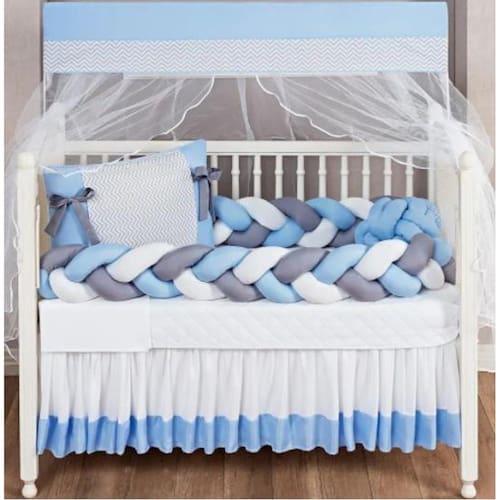 Kit berço masculino duas tranças laterais e edredom azul claro segurança e beleza para o berço 12 peças
