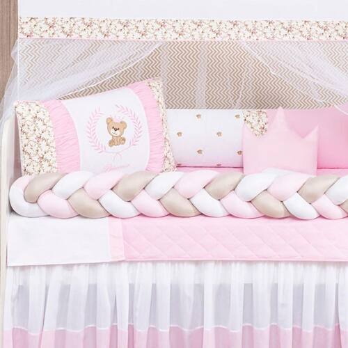 Kit Berço Bebê Menino 11 Peças Com Saia E Mosquiteiro Cor: ROSA