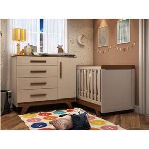 Berço Americano e Guarda Roupa Classic 2 Portas Branco com Pés Madeira Natural – Reller
