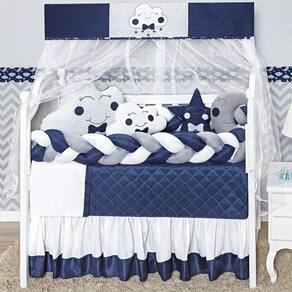 Kit Berço Com Duas Laterais Formato Nuvem 12 Peças Marinho
