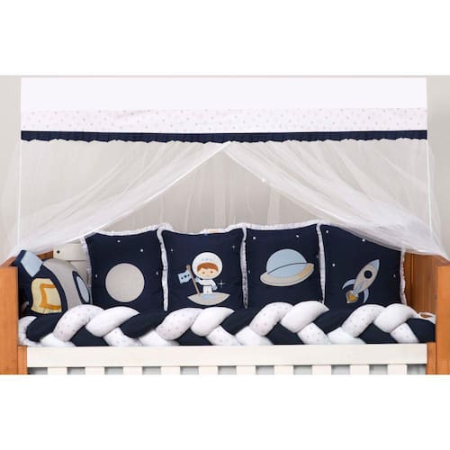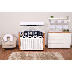 A Brubrelel empresa com mais de 20 anos de tradição e qualidade comprovada apresenta o sua maravilhosa linha de Kit Para Berço Americano Baby Magia de 10 Peças. Enxoval perfeito para o quarto de bebê! Os protetores de berço são os diferenciais: quatro almofadas bordadas e uma trança, além da cabeceira com o formato temático, que é uma gracinha. Elas possuem um enchimento bastante macio! Esse enxoval tem uma paleta de cores que apresenta tons suave, além de delicada Kit para berço AMERICANO.Conteúdo:01 Cabeceira 67cm x 40cm 01 Trança Lateral 1,37m x 15cm 04 Almofadas Laterais 32cm x 35cm 01 Edredom 1,43m x 93cm 01 Lençol Inferior c/ Elástico 1,40m x 72cm x 9cm (alt) 01 Fronha 36cm x 30Cm 01 Bandô c/ Mosquiteiro 1,35m x 1,80m Composição: Tecido 100% AlgodãoEnchimento 100% PoliésterTule 100% Poliamida Produto exclusivo com prazo de entrega diferenciado. Após a aprovação do pagamento, a entrega é imediata. Peso Bruto: 3,3500kgPara maior conservação, segue orientações do fabricante: Lavar a mão em temperatura máxima de 40ºcNão usar alvejanteSecagem a temperatura baixaPassar à temperatura mínimaNão limpar à secoLimpeza a úmido profissional processo suave Não inclui berço / móveis mostrados nas fotos Qualquer dúvida ou questão estamos sempre disponíveis!