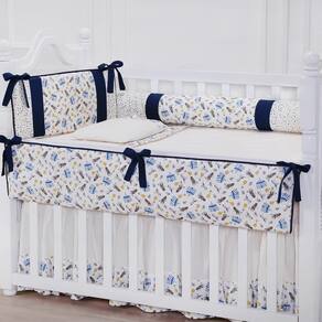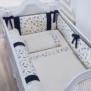 Tipo de berço:Americano e Nacional Acompanha jogo de lençol:Sim, 3 peças Acompanha trocador:Não Acompanha mosquiteiro:Não Coleção:Contemporâneo Possui Edredom ou cobre leito:Não Número de peças:06 Peças Possui zíper:Sim Possui Enchimento:Sim Possui Bordado:Não