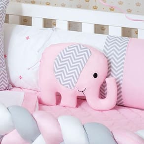 Compre agora mesmo o Kit Menina Trança Berço Elefantinho 13 Peças Com Saia Box e proporcione conforto e beleza ao quarto do seu bebê.