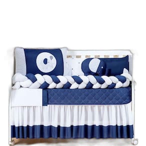 Kit De Berço Elefante Trança Azul Marinho 11 Peças