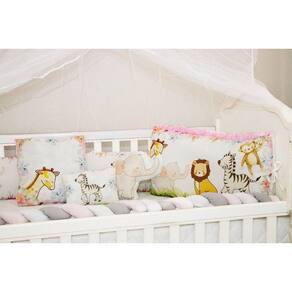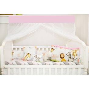 Kit Berço Feminino 10 Peças Americano Safari Rosa Completo Kit Exclusivo 10 Peças: 01 COBRE LEITO 0,95CM X 1,50M01 LATERAL 1,25M X 28 CM01 TRANÇA 1,35M X 12CM01 BANDÔ C/ MOSQUITEIRO 1,38M X 1,74M01 LENÇOL INFERIOR 70CM X 1,30M01 FRONHA 33CM X 26 CM01 CABECEIRA 66CM X 38CM01 TRAVESSEIRO 20CM X 26CM01 ALMOFADA FORMATO 31CM X 19CM01 ALMOFADA QUADRADA 35CM X 35CM COMPOSIÇÃO: TECIDO 100% POLIESTERTECIDO ESTAMPADO: 100% ALGODÃOENCHIMENTO: 100% POLIÉSTER Excelente para a segurança e conforto do seu bebê, com medidas para berço americano, traz elegancia necessária para o quarto.