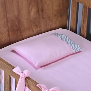 Kit de Berço Lençol + Fronha Percal de Algodão Menino Menina 3 Peças Cor: Chevron rosa Seus filhos merecem todo conforto e aconchego possível