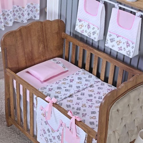 Kit de Berço Lençol + Fronha Percal de Algodão Menino Menina 3 Peças Cor: Urso rosa Seus filhos merecem todo conforto e aconchego possível