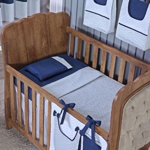 Kit de Berço Lençol + Fronha Percal de Algodão Menino Menina 3 Peças Cor: Chevron marinho Seus filhos merecem todo conforto e aconchego possível