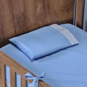 Kit de Berço Lençol + Fronha Percal de Algodão Menino Menina 3 Peças Cor: Chevron azul bebê Seus filhos merecem todo conforto e aconchego possível
