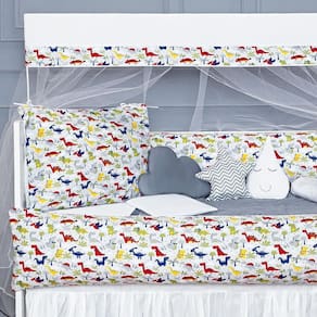 Composto por 13 peças, esse kit possui uma estampa luxuosa de dinossauros, perfeita para um quarto de menino. O padrão americano garante que todas as peças se encaixem perfeitamente no berço.