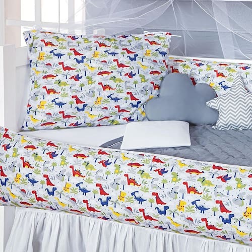 Composto por 13 peças, esse kit possui uma estampa luxuosa de dinossauros, perfeita para um quarto de menino. O padrão americano garante que todas as peças se encaixem perfeitamente no berço.