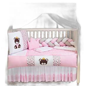 Kit Berço Menina Urso Princesa Rosa Claro 11 Peças Saia Box