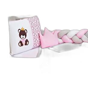 Kit Berço Menina Urso Princesa Rosa Claro 11 Peças Saia Box
