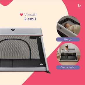 O Berco e Cercado Nix 2 em 1 foi pensado para familias que nao abrem mao de praticidade. Leve e facil de transportar, ele cria um espaco seguro e confortavel para o bebe dormir ou brincar, seja em casa, na casa dos avos ou em viagens.