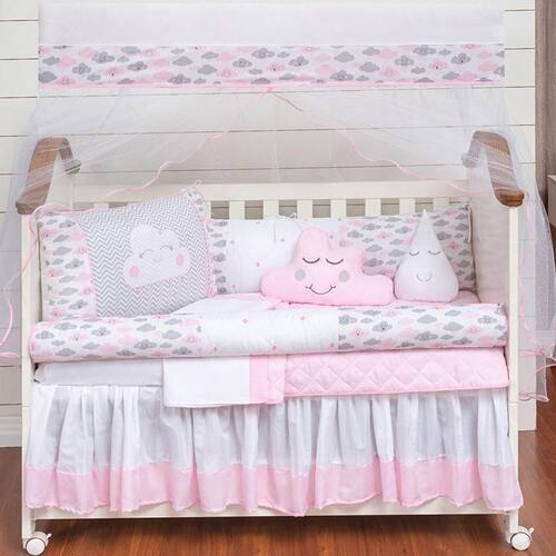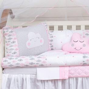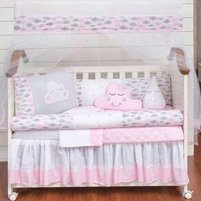 Kit Berço Nuvem Rolinho Menina Chuva Rosa 11 Peças