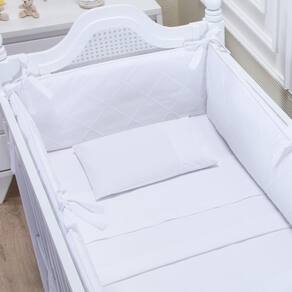 Tipo de berço:Americano e Nacional Acompanha jogo de lençol:Sim, 3 peças Acompanha trocador:Não Acompanha mosquiteiro:Não Coleção:Percal Possui Edredom ou cobre leito:Não Número de peças:07 Peças Possui zíper:Sim Possui Enchimento:Sim Possui Bordado:Não