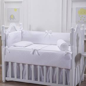 Tipo de berço:Americano e Nacional Acompanha jogo de lençol:Sim, 3 peças Acompanha trocador:Não Acompanha mosquiteiro:Não Coleção:Percal Possui Edredom ou cobre leito:Não Número de peças:07 Peças Possui zíper:Sim Possui Enchimento:Sim Possui Bordado:Não