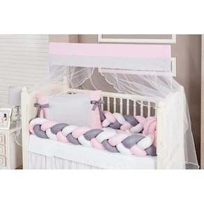 Kit Berço Rosa Claro Segurança Beleza Para O Berço 12 Peças Kit berço menina duas tranças laterais e edredom rosa claro segurança e beleza para o berço 12 peças Contém: 1 edredom 1,30 m x 0,70 cm. 1 cabeceira 0,60 cm x 0,40 cm. 2 tranças 1,28 m x 0,12 cm. 1 lençol de cima 1,30 m x 0,90 cm. 1 fronha 0,28 cm x 0,38 cm. 1 bando de mosquiteiro 1,40 m x 0,20 cm. 1 mosqueteiro 4,50 m x 1,50 m. 1 trocador 0,60 cm x 0,40 cm. 1 almofada escandinava 0,40 cm x 0,40 cm. 1 saia para berço 1,30 m x 0,70 cm x 0,30 cm.