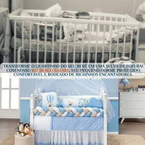 Nosso Kit Berço Safari para Menino vem com 11 peças completas, estampa fofa de bichinhos, acabamento impecável e ainda acompanha uma naninha linda Ideal para quem busca conforto, proteção e um toque especial na decoração do berço.