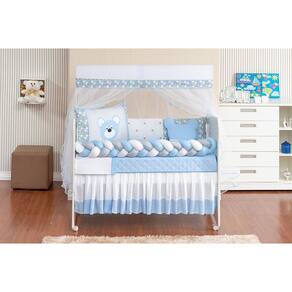 Este kit é perfeito para proporcionar um ambiente confortável, seguro e aconchegante para o seu bebê. Invista em qualidade e estilo para o berço do seu pequeno com o Kit Berço Trança Completo Baby Azul 12 Peças.