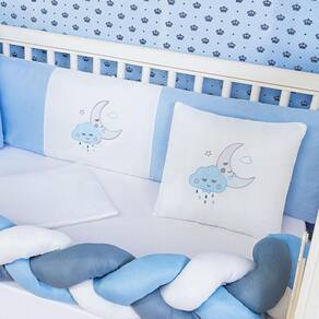 Kit Berço Trança Nuvem Feliz Menino 6 Peças Azul