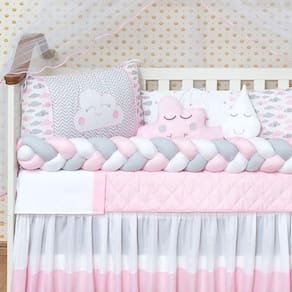 Kit de berço nuvem trança 12 peças O kit berço serve em berços padrão nacional e americano Possui zíper para retirar os enchimentos Contém na embalagem: 1 edredom 1,30 m x 0,75 cm 1 almofada nuvem 0,40 cm x 0,20 cm 1 cabeceira 0,57 cm x 0,37 cm 1 lateral 1,25 m x 0,25 cm 1 trança 1,25 m x 0,12 cm 1 lençol de cima 1,30 m x 0,90 cm 1 fronha 0,28 cm x 0,38 cm 1 bandô de mosqueteiro 1,40 m x 0,20 cm 1 mosqueteiro 4,50 m x 1,50 m 1 almofada de gota 1 saia box 1 lençol 1,20 m x 0,80 cm Composição: Tecido estampado: 100% algodão Tecido liso: 50% poliéster / 50% algodão Enchimento = 100% poliéster Mosquiteiro = 100% poliamida Ficha técnica - Comprimento do berço: 1,30 M - cor: rosa - Inclui edredão: Sim - Inclui lençóis: Não - Largura do berço: 0,70 CM - Quantidade de peças: 12 Marca: L2m Ean: 7774514451223