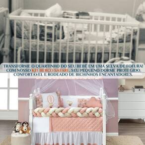 Kit Berço Trança Safari Marinho Menino 11 Peças Com Saia Cor: ROSE O kit berço que une segurança, fofura e muito estilo Seu bebê merece um cantinho cheio de amor O Kit Berço Trança Safari Marinho Menino vem com 11 peças incríveis, incluindo a charmosa trança protetora, mosquiteiro com varal decorado, estampa fofa de bichinhos e uma paleta de cores que encanta. Ideal para quem quer decorar com bom gosto e garantir o conforto e a proteção que seu pequeno precisa desde o primeiro dia.