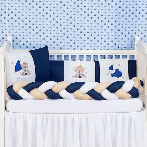 Informações importantes: O produto já vai pronto para o uso, com o enchimento já incluso. Acompanha as peças conforme a descrição, não está incluso o berço A cabeceira e a lateral do kit possuem zíper para retirar o enchimento, facilitando assim uma possível lavagem do produto. Marca: Brucebaby Bordados Ean: 7791854654718