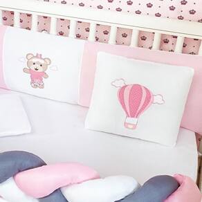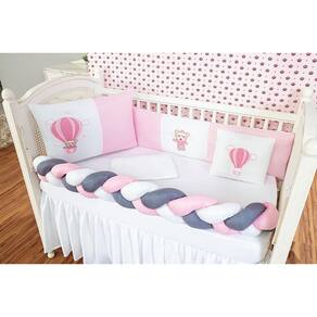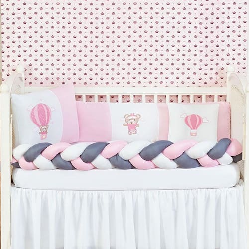 Kit Berço Trança Urso Balão Com Enchimentos 6 Peças Rosa