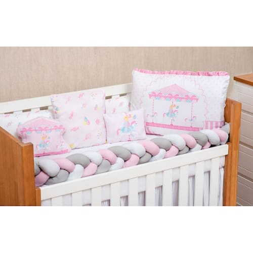 Kit berço trançado com capa impermeável elástico carrosel Esse kit contém 11 peças para o berço, sendo: