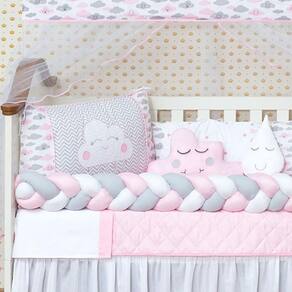 Kit de berço nuvem 12 peças O kit berço serve em berços padrão nacional e americano Possui zíper para retirar os enchimentos Tecido de qualidade Contém na embalagem: 1 edredom 1,30 m x 0,75 cm 1 almofada nuvem 0,40 cm x 0,20 cm 1 cabeceira 0,57 cm x 0,37 cm 1 lateral 1,25 m x 0,25 cm 1 trança 1,25 m x 0,12 cm 1 lençol de cima 1,30 m x 0,90 cm 1 fronha 0,28 cm x 0,38 cm 1 bandô de mosqueteiro 1,40 m x 0,20 cm 1 mosqueteiro 4,50 m x 1,50 m 1 almofada de gota 1 saia box 1 lençol 1,20 m x 0,80 cm Composição: Tecido estampado: 100% algodão Tecido liso: 50% poliéster / 50% algodão Enchimento = 100% poliéster Mosquiteiro = 100% poliamida Marca: Não Informado