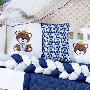 Kit Berço Menino Trançado Urso Rei 11 Peças Marinho Baby