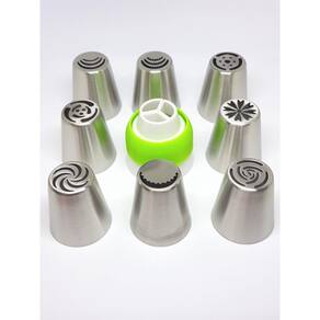 Características: Composição: Aço Inoxidádel Kit contendo 8 Bicos diferentes 01- acoplador 01- saco de confeitar Todos os bico sem emenda Dimensões: aproximadamente 25mm bico X 37mm base X 42 mm altura