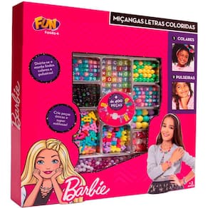 Kit Bijuterias Infantil - Barbie - Miçangas Letras Coloridas - Fun Divirta-se: as crianças ficam ainda mais fashions com as Miçangas Letras Coloridas da Barbie. Essa linha é um encanto. É possível criar diversas variações e opções de colares e pulseiras para ficar na moda. No melhor estilo “DIY (Do It Yourself - Faça Você Mesmo), as crianças podem criar seus próprios conjuntos de colares e pulseiras com mais de 400 peças incluindo variedades de letras e miçangas coloridas. Acompanha diferentes estilos de letras e vários tipos de miçangas para arrasar no look. Arrase com as Miçangas Letras Coloridas da Barbie! Detalhes: • Você pode criar vários colares e pulseiras incríveis • Mais de 400 peças • Diferentes estilos de miçangas e letras coloridas • Crie diversos acessórios com a variação que Miçangas Letras Coloridas lhe entrega Informações: • Produto: Miçangas Letras Coloridas • Marca: Fun Divirta-se • Coleção: Barbie • Tipo: Conjunto de bijuterias infantil • Categoria: Beleza e Moda Infantil • Conteúdo: Miçangas de plástico e cordão • Recomendação: para crianças a partir de 03 anos de idade Especificações: • Referência: F0085-6 • Código de Barras: 7908489401369 • Embalagem (C x A x L): 30 x 31 x 04 cm • Embalagem (Peso): 0.330 kg • Material / Composição: Plástico • Registro: CE-BRI/INNAC 02115-000 NM 300/2002 • Certificado: Órgãos Autorizados - OCP´S (Organismos de Certificação de Produtos) Benefícios de brincar: • Eleva a autoestima • Exercita a memória • Estimula o raciocínio • Exercita o imaginário • Desenvolve a criatividade • Desenvolve percepção visual • Desperta a atenção e curiosidade • Desenvolvimento neuropsicológico • Estimula habilidades motoras básicas • Incentiva a comunicação e linguagem • Desenvolve aspectos emocionais e afetivo • Estimula o reconhecimento de formas e cores Aviso: • As imagens são meramente ilustrativas • Os pesos, tamanhos e medidas são aproximados • As cores e estampas dos produtos podem ter variações • As informações são de responsabilidade do fabricante ou fornecedor