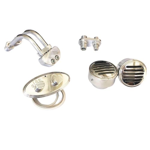 Kit Billet Universal para Ar Condicionado Composição do Kit: Fabricado em CNC de alumínio T-6061; Acabamento natural polido; Comando Modelo universal, compatível com o compressor modelo 7B10; Modelo oval 120x55mm universal, compatível com o qualquer caixa evaporadora; Acompanha chave liga/desliga de 3 velocidades com led vermelho e termostato; Conexão padrão e retorno para compressor; Conexão para sistema de a/c para passagem painel corta fogo; 2 Difusores billet para saída do sistema de ar condicionado Alto padrão de acabamento. Marca: Não Informado
