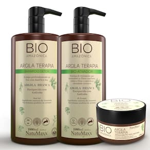 Escova Bio Amazônica – Shampoo Detox 1L + Gloss Ativador Bio Amazônica 1L + Argila em Pó 150g NatuMaxx
