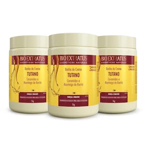 Linha Tutano - Força e Maciez Pioneira no uso do tutano em cosméticos capilares, a Bio Extratus desenvolveu uma linha completa para dar mais força e maciez. Indicação: Cabelo ressecado. Função: Limpar com suavidade, nutrir e hidratar intensamente. Resultados e Benefícios: Protege os fios, tornando-os mais saudáveis, macios e brilhantes. Ativos: Karité: Previne o ressecamento dos cabelos. Protege das agressões mecânicas e climáticas, inclusive dos raios ultravioleta. Tutano: Rico em proteínas, nutre e fortalece profundamente o cabelo, hidratando e protegendo das agressões externas. Ceramidas: Restaura os cabelos danificados por condições estressantes, aumenta o brilho, a elasticidade e a resistência dos fios. Silicone: Confere brilho, proteção e sedosidade, proporcionando aparência saudável e natural ao cabelo. Banho de Creme: Proteínas para hidratar, nutrir e fortalecer os cabelos. Enriquecido com de karité, que protege dos danos causados por agentes externos. Tem ação emoliente, contribuindo para a redução das pontas duplas em cabelos secos, desvitalizados e envelhecidos. Ph 4,0. Marca: Não Informado