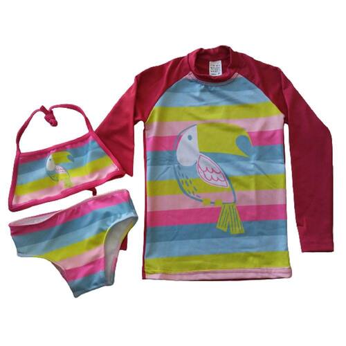 Que tal um belo kit composto por biquini infantil e blusa de proteção, com o tema dos personagens mais divertidos?!Blusa manga longa com decote redondo e estampa de personagens.